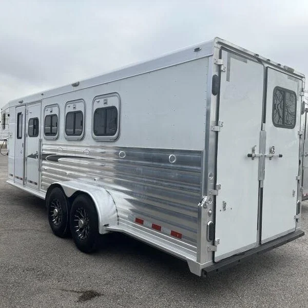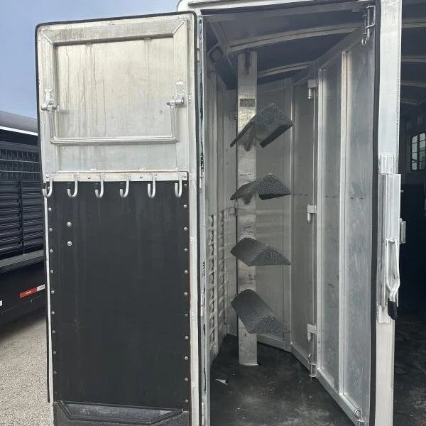 All pre-owned trailers are FULLY SERVICED prio to sale. Our service includes inspection and service of the brakes, packing of the bearings, testing of all lights (interior and exterior) as well as checking and sealing roof seams. 2004 Cherokee Trailers 4H GN 4’DR Horse Trailer